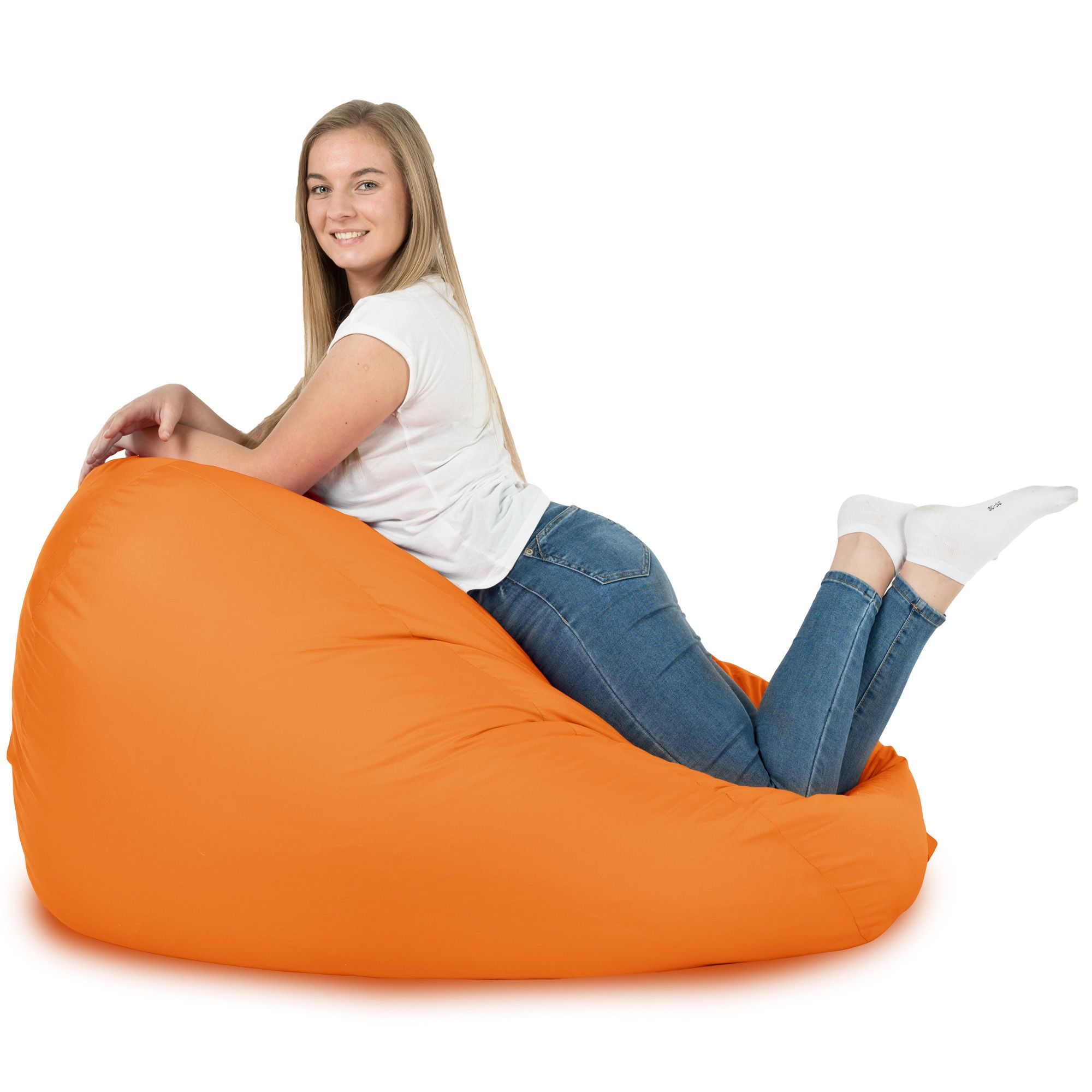 Ce sac poire orangé pour jardin égaiera l'espace autour de la maison. Sa belle couleur enchantera l'aspect de la terrasse et la rendra unique en son genre. Le siège est fabriqué en nylon, qui est imperméable. Grâce à cela, vous n'avez pas à craindre que les sièges soient endommagés par la pluie.